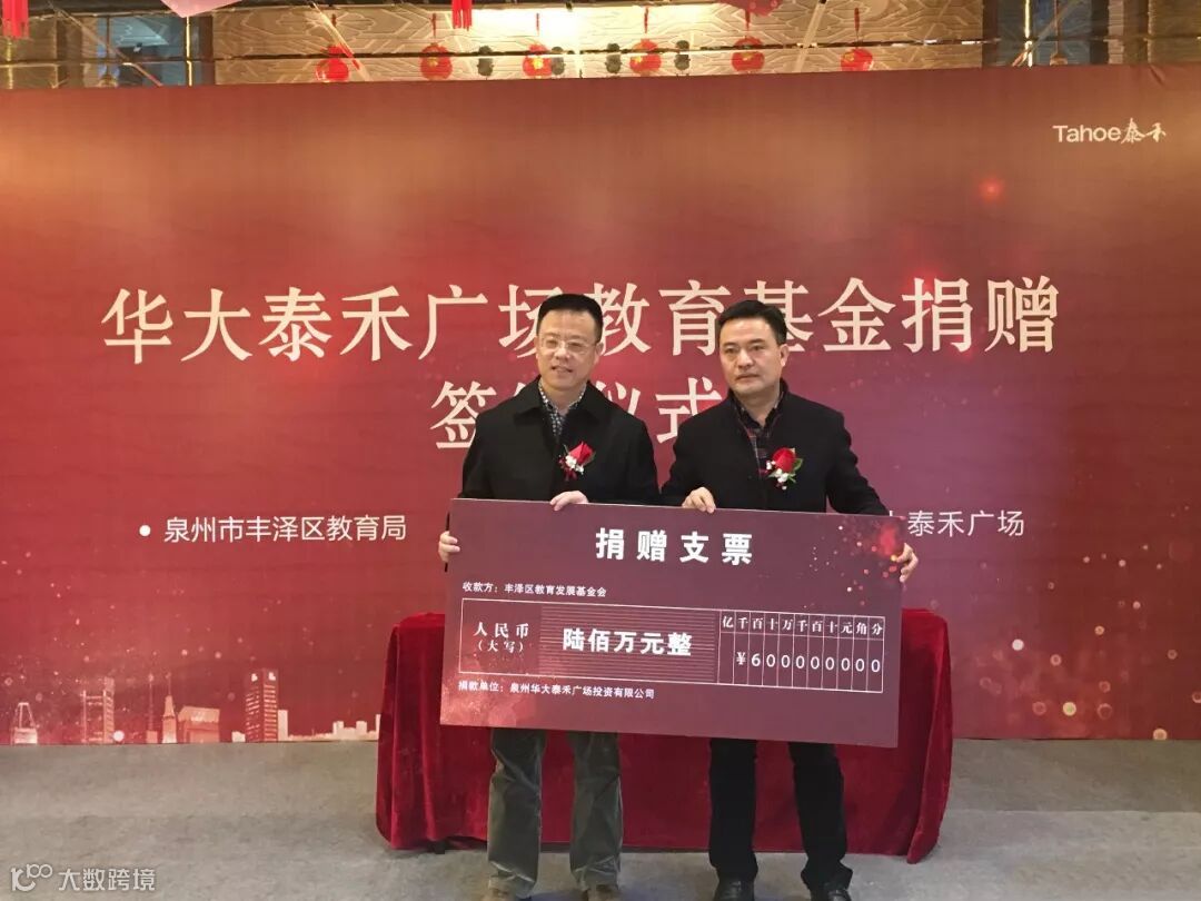 1月31日,由泰禾集团泉州公司华大泰禾广场发起的“捐资助学,携手未来”华大泰禾广场教育基金捐赠签约仪式圆满落幕。泉州市丰泽区相关领导、泰禾集团总裁助理兼泉州公司总经理李卫东等出席仪式。