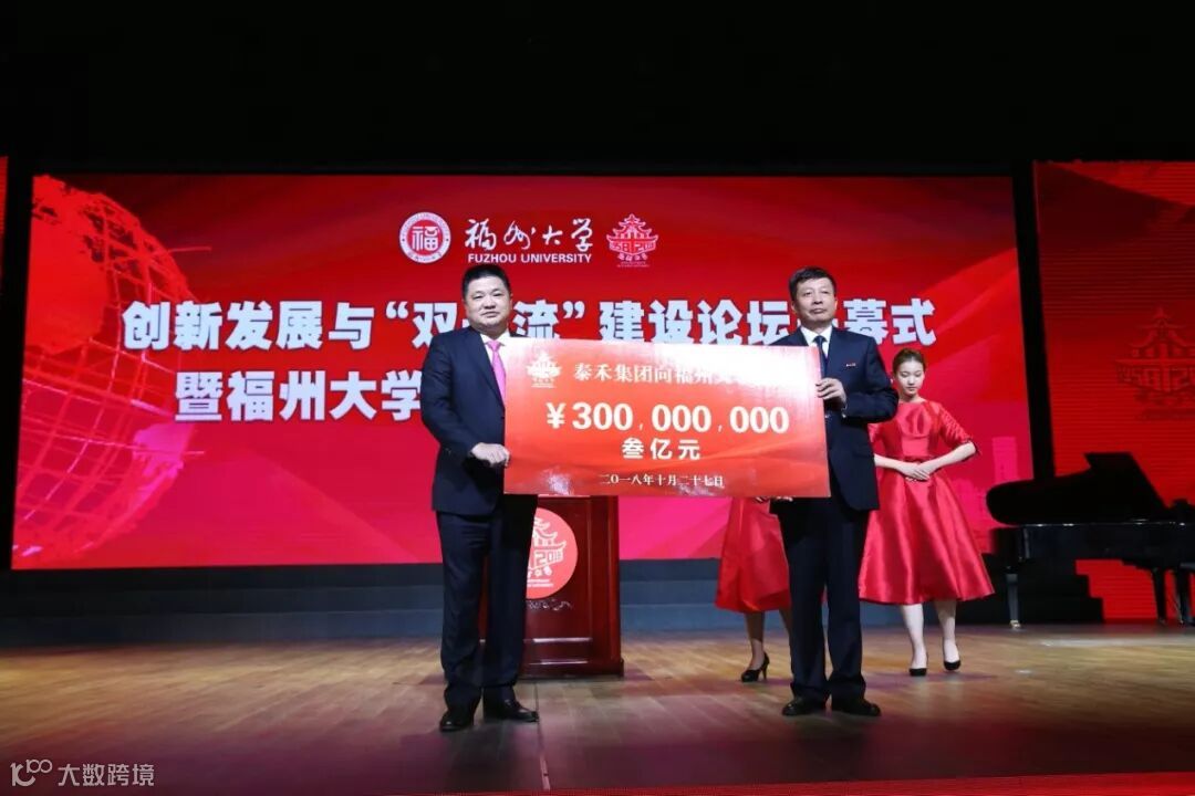 2018年10月27日,其母校福州大学迎来60周年校庆,泰禾集团向福州大学捐赠3亿元,其中2亿用于捐建福州大学旗山校区音乐厅,1亿用于设立福州大学泰禾基金。