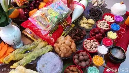 ✔湿以素菜为主,所谓的湿指的是蔬菜过水或者过油,像芥菜、香菇、菜花、芋头、发菜豆腐、腐竹、紫菜等等,而其中必须要有的是香菇,有句闽南俗语叫做:“唔菇不成斋。”所使用的东西都是有寓意的,像芥菜也称作常年菜,寓意天长地久,而像芋头,寓意保佑子孙兴旺之类的。