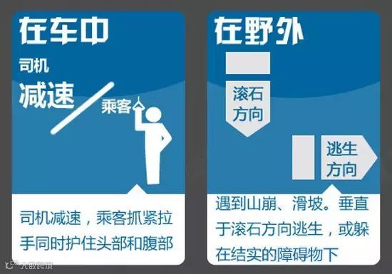 千万别躲在车里: 汽车看起来很结实,但其实只是薄薄的一层,不堪一击。发生大地震时,如果你在驾车,汽车会像轮胎泄了气似的,无法把握方向盘,难以驾驶。此时应避开十字路口将车子靠路边停下,然后立即下车抱头蹲在车边。