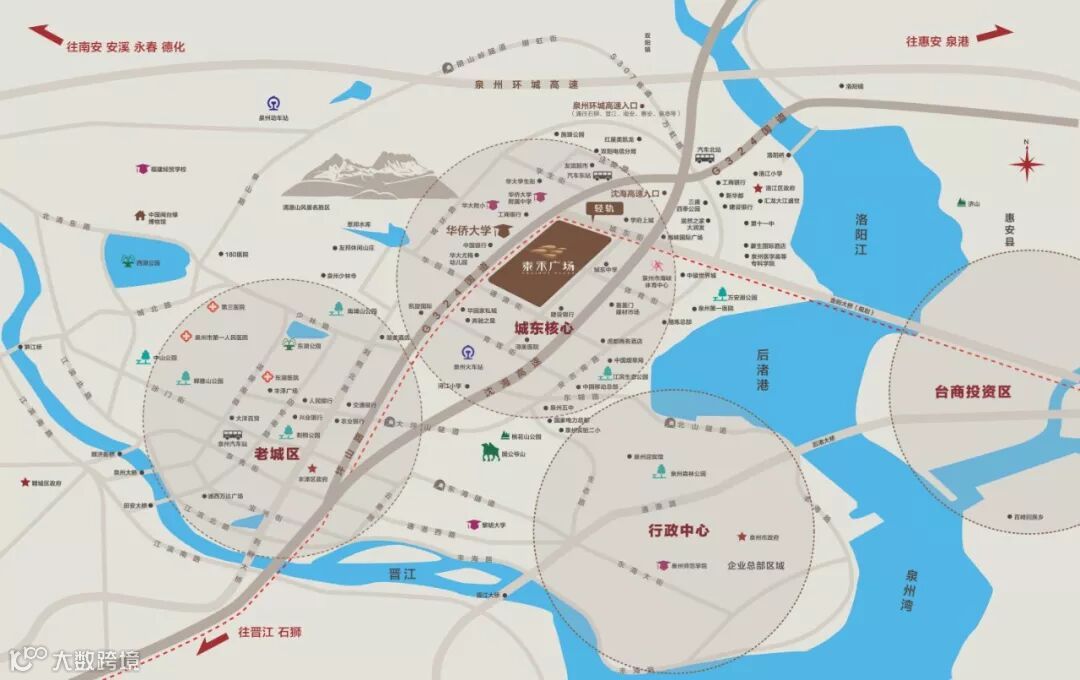 华大泰禾广场凭借75万㎡的超大体量被誉为城东中心的“城中之城”,居泰禾园筑之中,将享受到集合“吃、喝、玩、乐、购、教”等多方面高端生活模式为一体的一站式生活。泰禾园筑雄踞城东最繁华区域,132米的高度标定城东之最,市政级配套、商业配套环绕,毗邻华侨大学、华大附小、城东中学,是泉州城东最稀缺的学区空中墅。园区+互联网(泰禾云海APP)的一站式服务平台为基础,更为业主提供了包括生活服务、餐饮服务、租赁服务以及物业服务等六大项服务体系,以服务筑未来,便捷业主生活。
