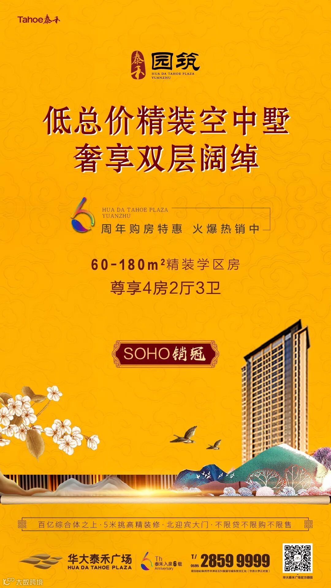 精装复式泰禾园筑,买一层得两层,于“城中之城”繁华之地拥享百亿配套,现华大泰禾广场六周年活动期间送好礼,置业投资品典藏旺铺或精装学区空中墅,就能获得莫文蔚11月24日泉州演唱会门票现场体验,错过不再!