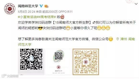 闽南师范大学:"贴心路线"——建立新生群,回答的新生疑惑,扫二维码群里聊↓还有各种信息渠道获取,真的是非常实用哈~