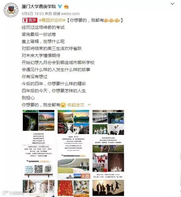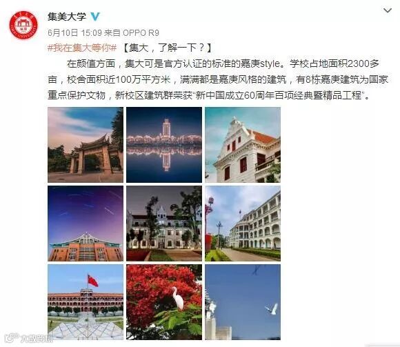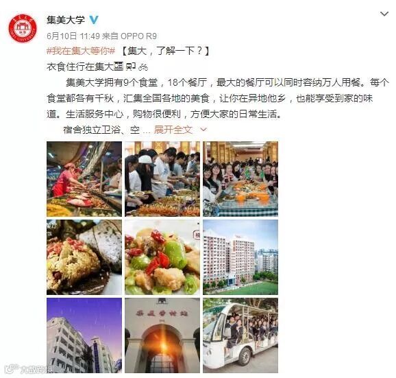 集美大学:招生广告可以说是用心良苦,连续几天,从历史颜值到衣食住行…满满的九宫格贴图,就问你够不够诚意!