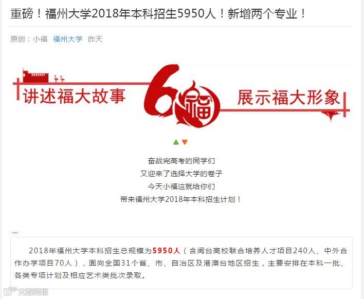 福州大学:走“耿直”路线,以数据说话,新增两个专业,相信大家更关心的是报考的内容吧↓