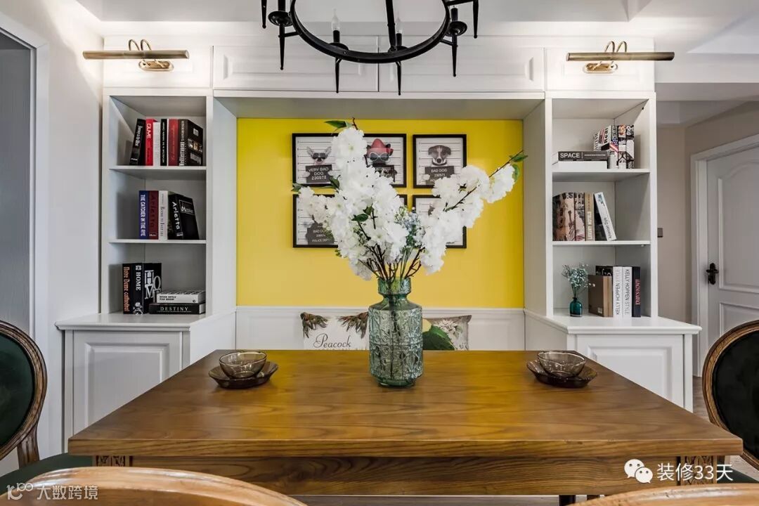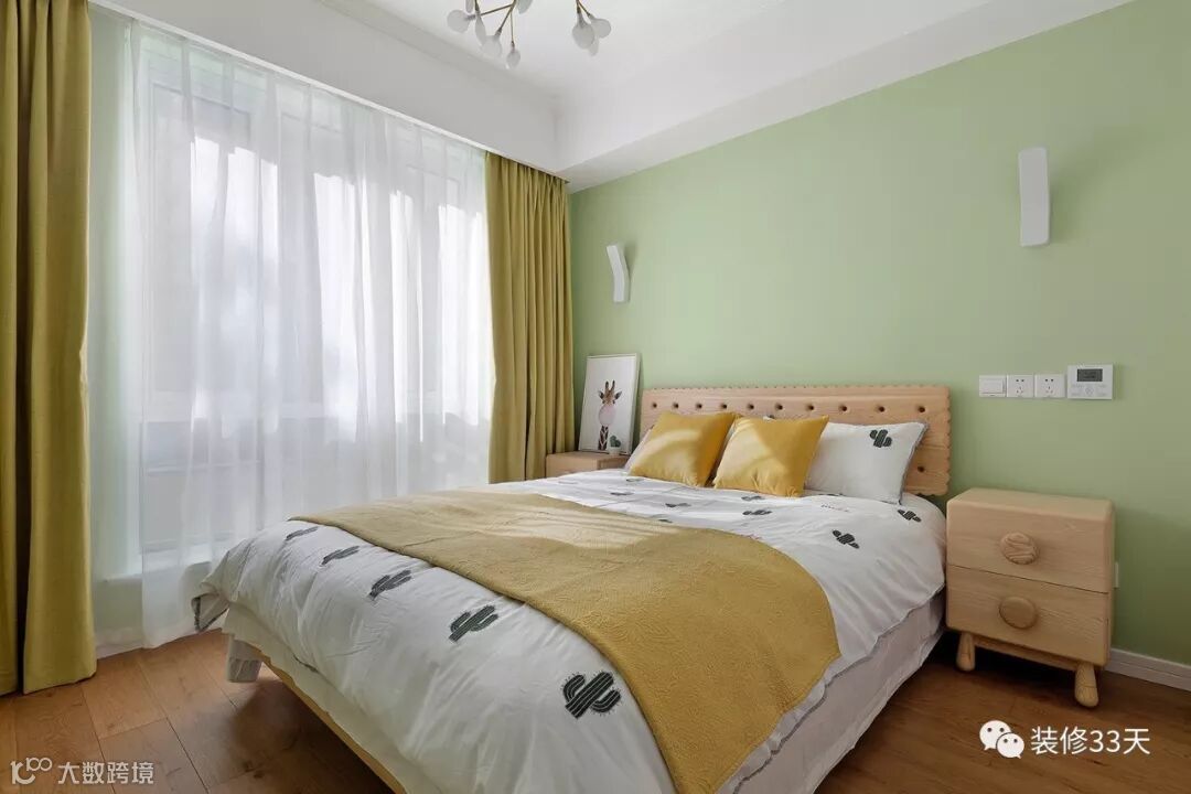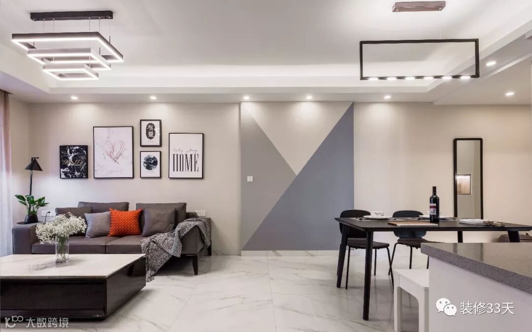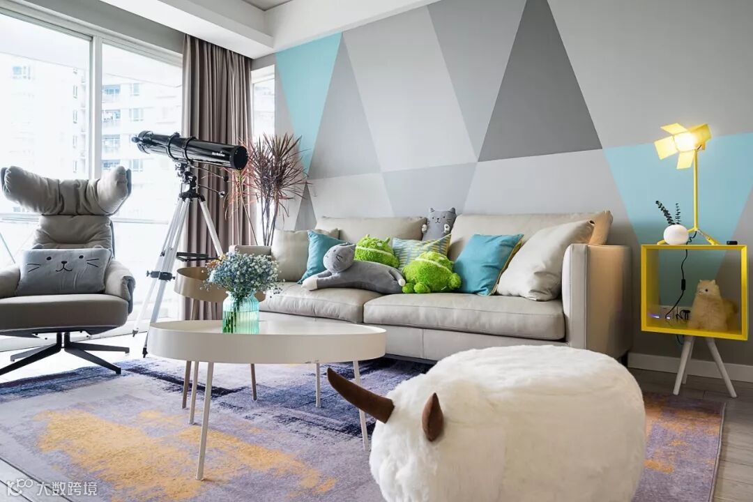 ▲ 乳胶漆也可以做图案效果,只是施工起来会麻烦一些,需要先做一种颜色,等干透了再做另外一种,中间用美纹纸贴好形状就行