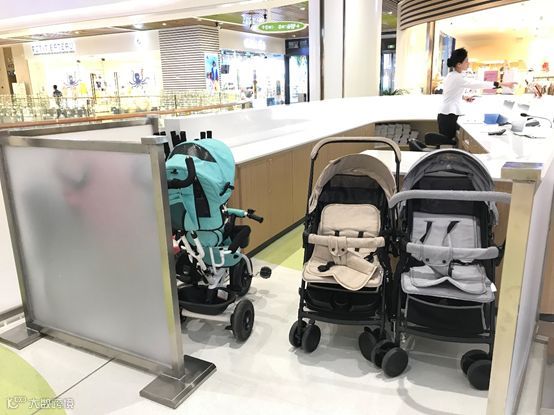 在服务设施方面,因为东区商场主打儿童家庭定位,因而商场配备了适合不同年龄段孩子的手推车,各楼层都设有儿童专属洗手间,整体设计比较人性化。