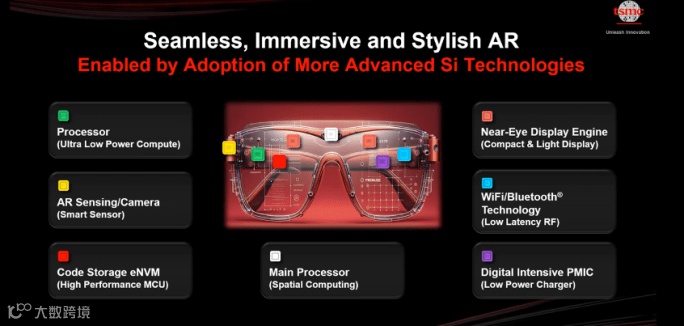 图2:台积电在最近的北美技术研讨会上展示的AR眼镜芯片概念图。资料来源:台积电
