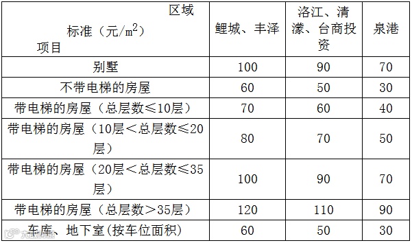 泉州市区首期住宅专项维修资金按以下标准交存:(仅供参考)