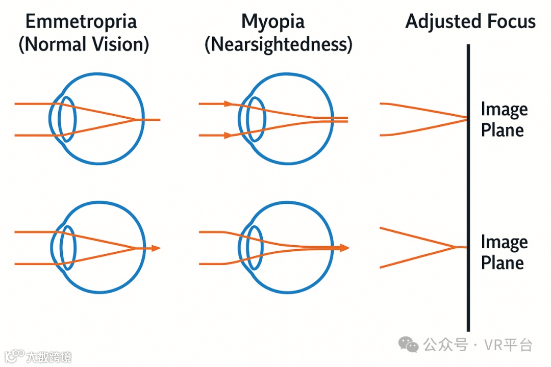 举个例子:XR设备默认的焦点设定在“虚拟两米”外,但如果你是个近视400度的人,你的眼睛看到的焦点实际上“偏了”——就像拍照时焦点没对准,画面就变糊了。