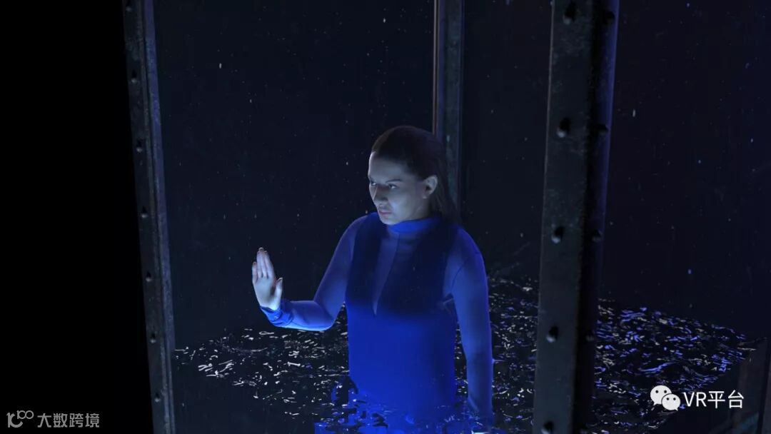 从绘画到视频,VR可以与其他媒介产生关联,是它足以成为一种激进的创新,为艺术家开辟以前无法想象的机会。在“行为艺术之母”Marina Abramović创作的VR作品《Rising》中,Abramović的化身在一个快速充满水的玻璃水舱中,双手压在玻璃上,向观众发出求救。当观众抬起自己的手去准备接住艺术家的时候,墙壁突然破碎,观众会瞬移到北极,面前是快速散落融化的冰川,四周是波涛汹涌的浪花。