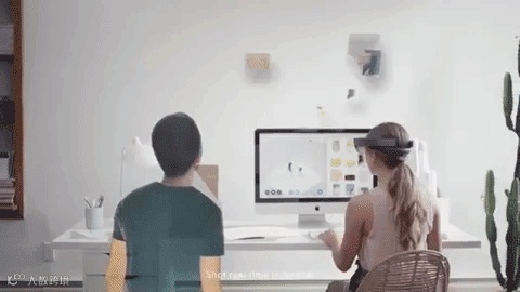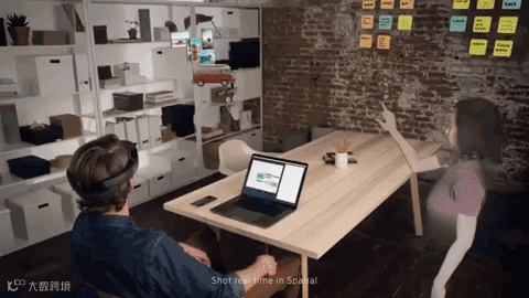 Spatial AR主打两大功能,一是远程面对面虚拟会议,二是可投射在房间中的“虚拟桌面”,并能拖拽相关对象到桌面中。