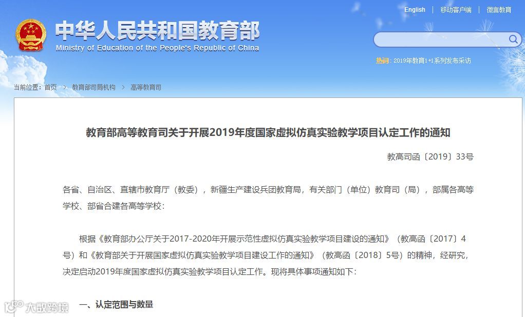 请各单位高度重视,按时、保质完成2019年度国家虚拟仿真实验教学项目推荐工作。在工作中遇到有关问题,请及时与我部联系沟通。