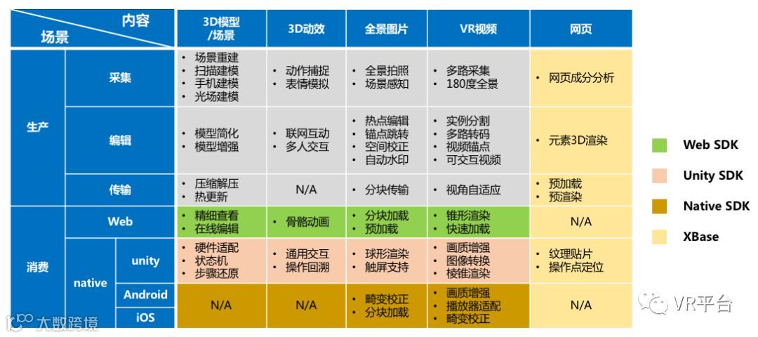 百度VR整体技术框架——能力矩阵