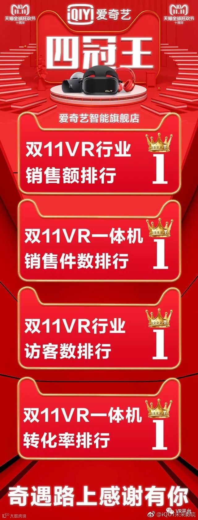 遗憾的是,截至发稿时并未在任何平台中获悉关于VR销售的详细数据统计。但@iQUT未来影院在微博公布:爱奇艺智能开场12小时销售额突破¥2,000,000.00,天猫VR行业排名No.1,也是取得了可喜的成绩。