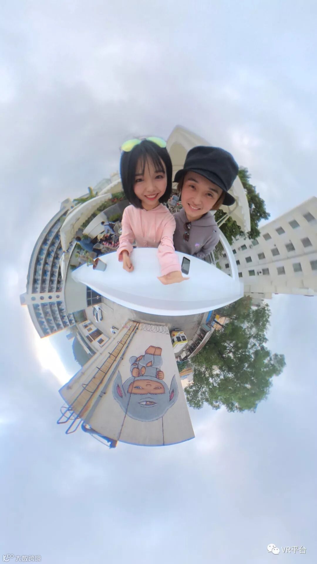 在PanoClip Lite实际拍摄所得的全景照片中,其颗粒感较为明显,清晰度也不算高。除了有较为明显的拼接痕迹外,由于手机前后摄像头的像素不一也造成了图像较为明显的像素差异。