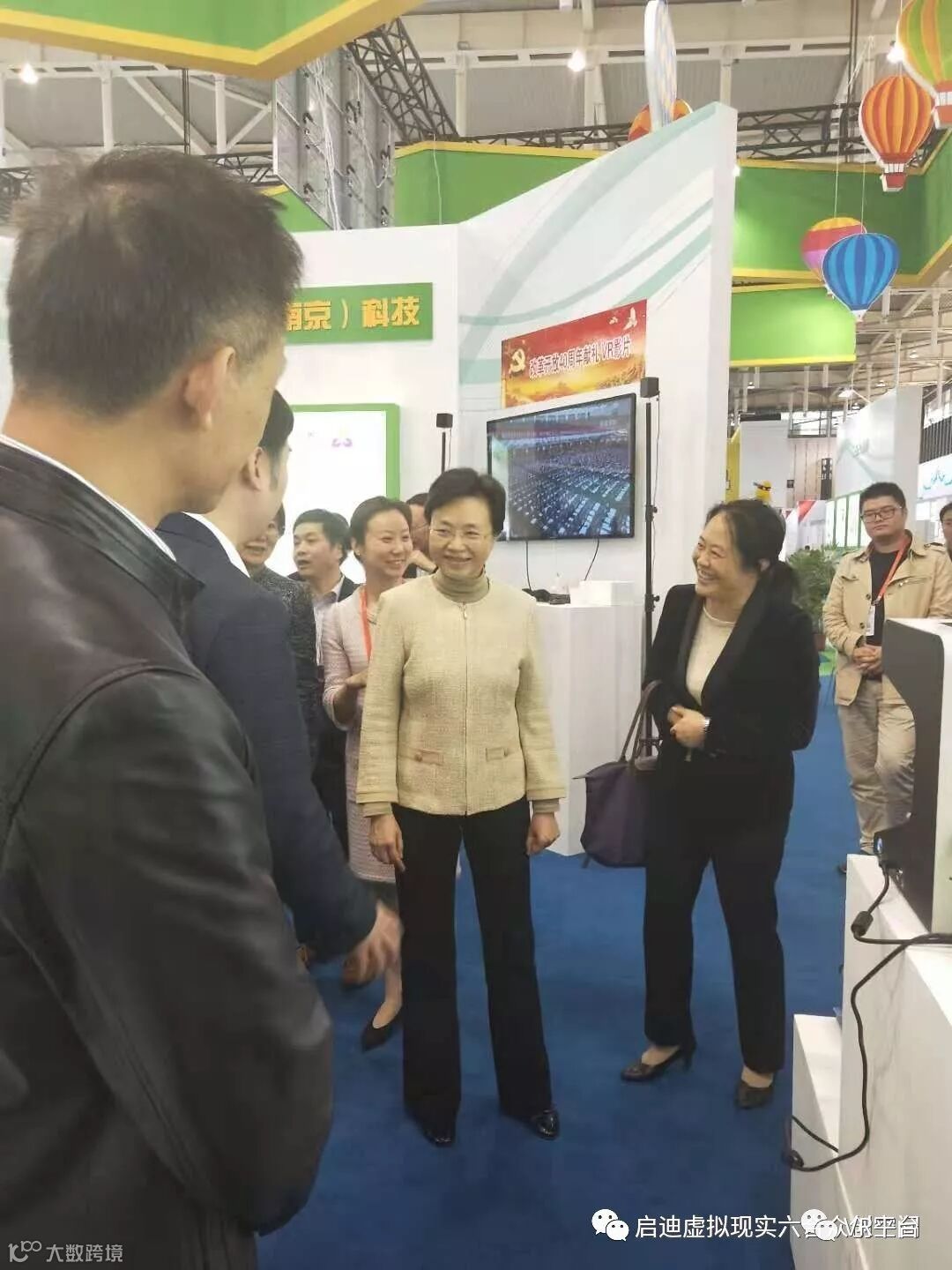 江苏省委常委、省委宣传部王燕文,南京市六合区区委常委、宣传部长孙宇瑾等一行到2018中国(南京)文化科技融合成果交易会(简称“南京融交会”)参观考察。