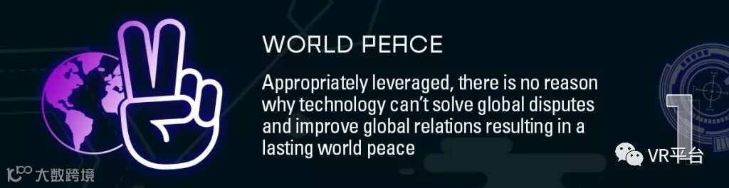 有了合适的“杠杆”,技术就没有理由不能解决全球争端和改善全球关系,从而实现世界和平。Tap on Opera总经理Ann Hiatt说:“沉浸式技术将改善全球交流,而不像今天的社交媒体对不法分子的匿名保护,从而迫使人们更诚实、更公开的进行对话。”