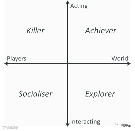 在休闲游戏玩家的范畴里,研究者可以看到四个象限或“类型”。分别为杀手、成功者、社交者、探险家。