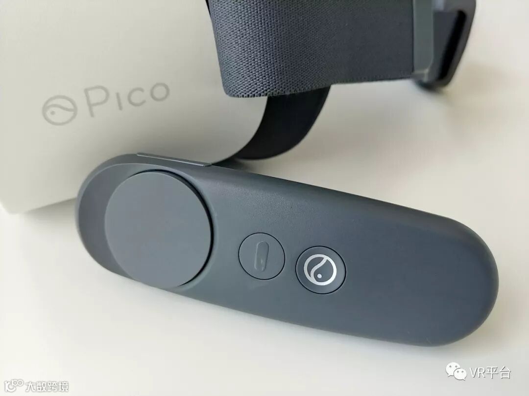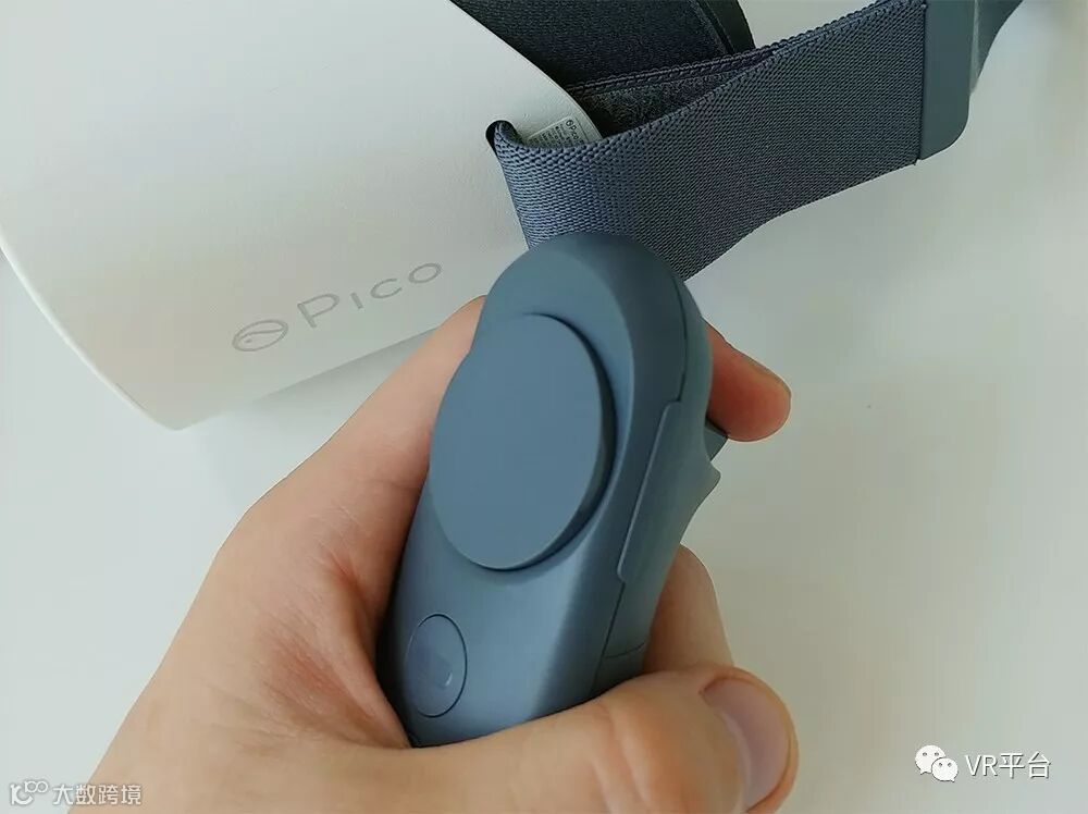 Pico G2配备了一个3DoF手柄,包括圆形触摸按键、扳机键、返回键、音量键以及HOME键,另外该手柄需两节7号电池支持。