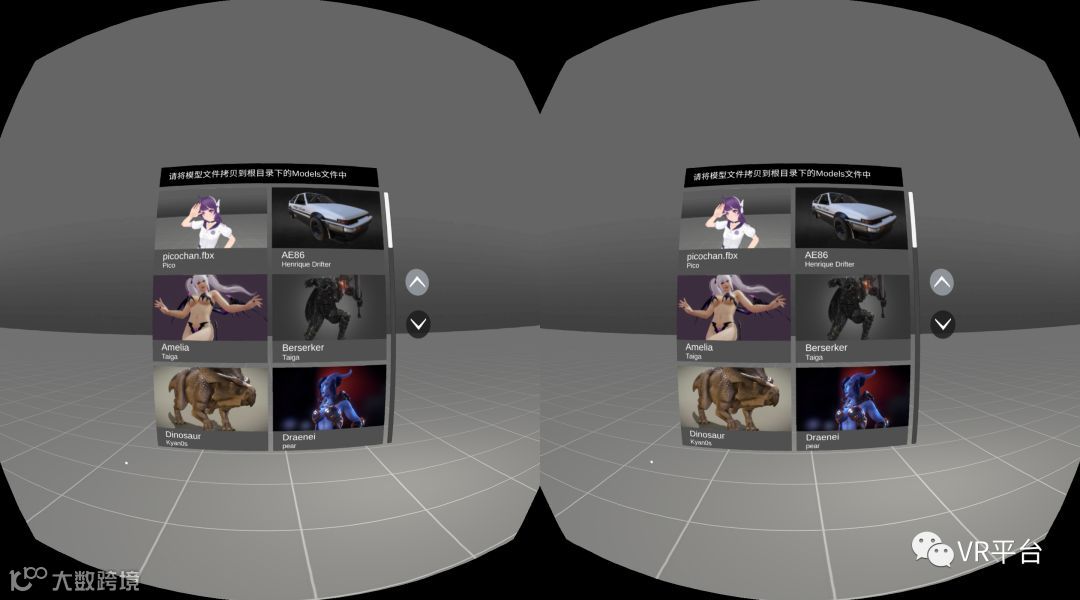 3D模型浏览器:3D模型浏览器实则是一个能在VR环境中查看3D模型的工具。除了内置的数款动漫、游戏人物的模型外,用户还可自行导入模型。