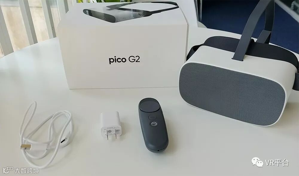 除了简约,VR网小编(微信公众号:VR平台)想不到任何词汇来形容Pico G2的包装,而盒内也只有一体机头显、说明书,以及内含了手柄、Type-C数据线和充电器的小盒子。