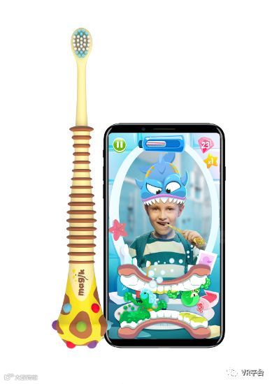 这款名为"Brush Monster"的牙刷价值49美元,可以通过蓝牙连接到智能手机和平板电脑,并通过iOS和Android的配套应用提供有趣的AR体验。