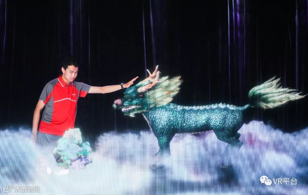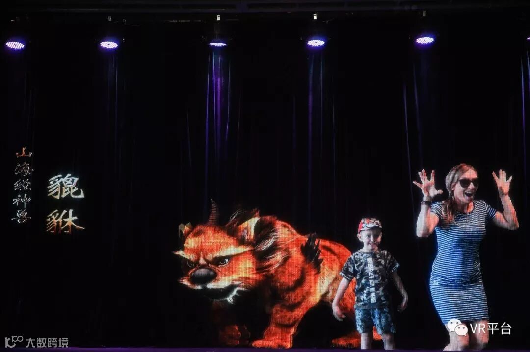 体验完全息踢足球,还有更神奇的虚拟神兽互动拍照体验等着你。游客只需站在舞台对面右侧的互动抠像区,就能与神兽合影、真假互动。