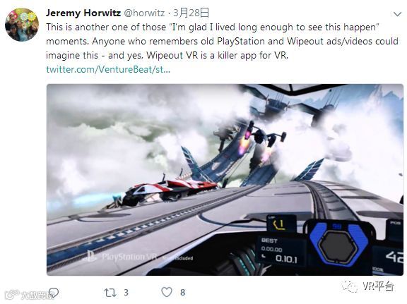 这就是VR的意义所在。从那时起,我就有了许多令人印象深刻的VR体验。比如我可以像蝙蝠侠一样,也可以驾驶汽车或者驾驶星球大战的宇宙飞船,我可以跳出飞机去探索外太空中恐怖的环境。现在,我已经等不及索尼的VR游戏《Wipeout Omega Collection》更新了。
