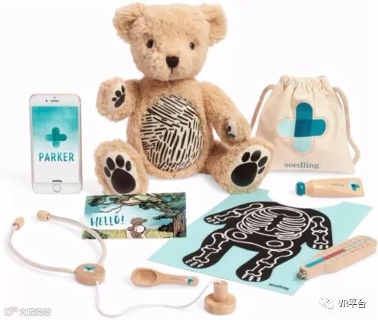 当泰迪熊Parker生病的时候,孩子们可以通过智能手机或平板电脑的特定应用帮它恢复健康,通过随附的木质体温计来测量Parker的体温,而屏幕上会显示它究竟是否有发烧或体温有多高。此外,智能手机或平板电脑还可以将Parker与各种场景叠加,孩子们可以利用这些功能发挥他们的想象力,做他们想做的任何事。