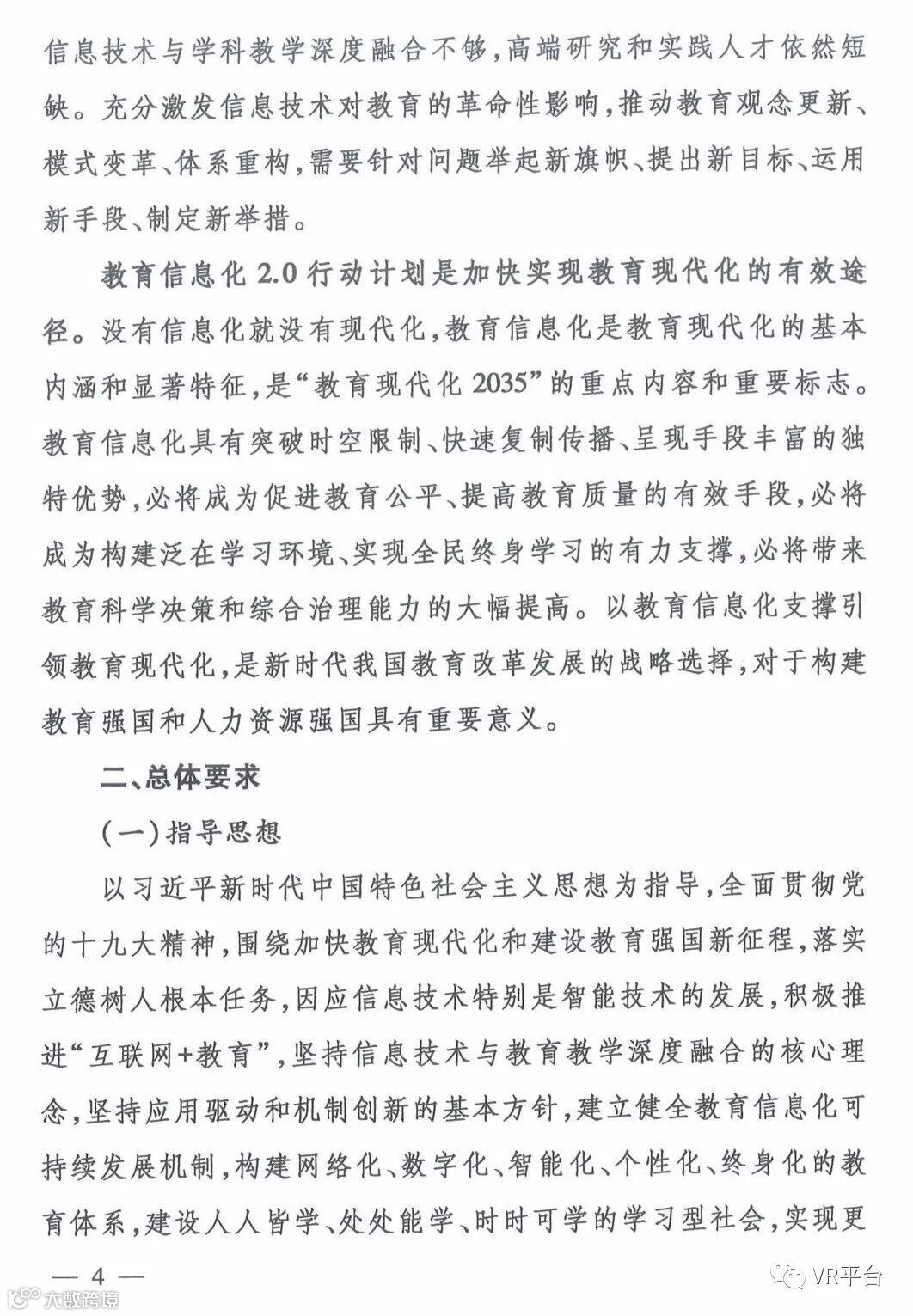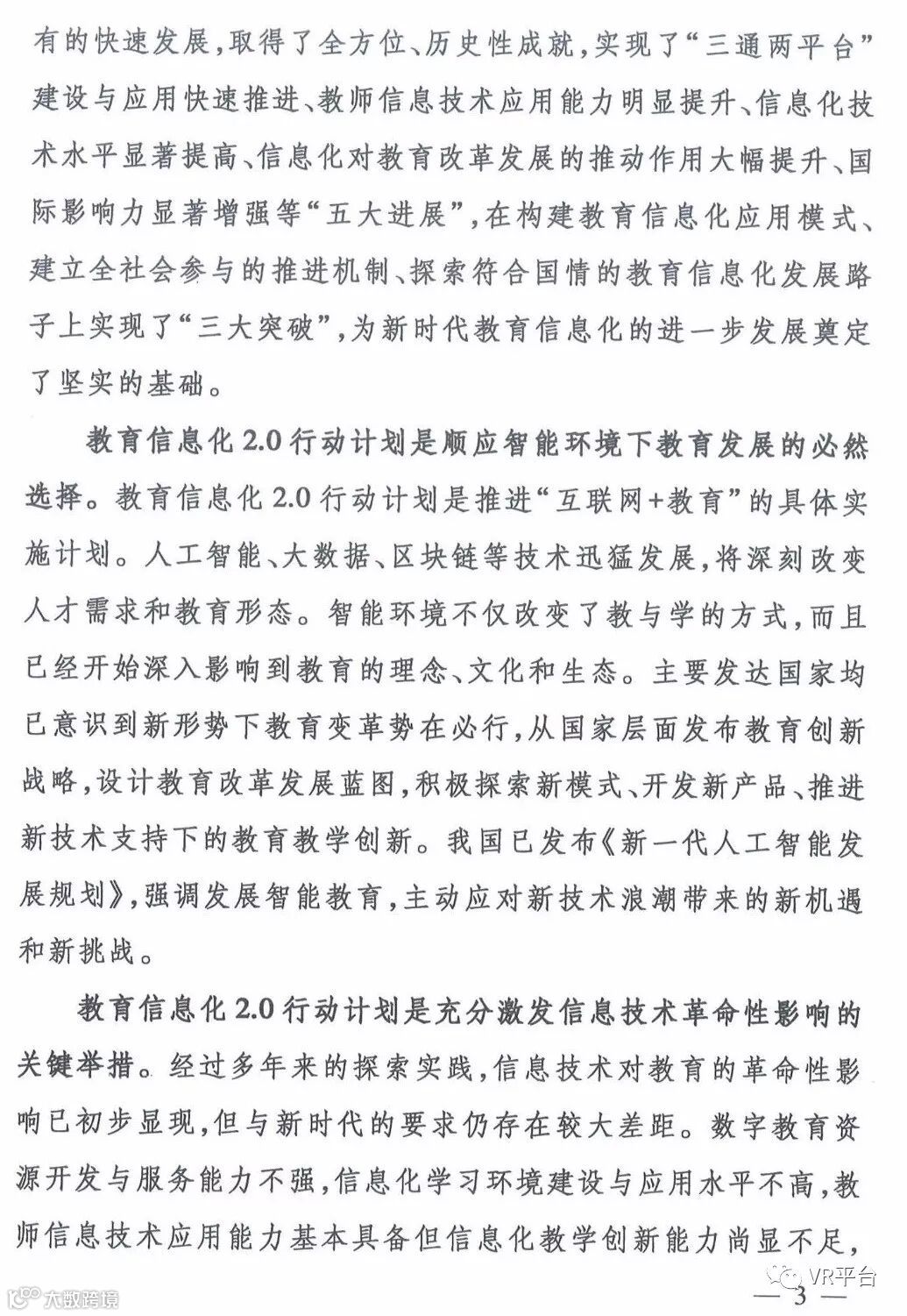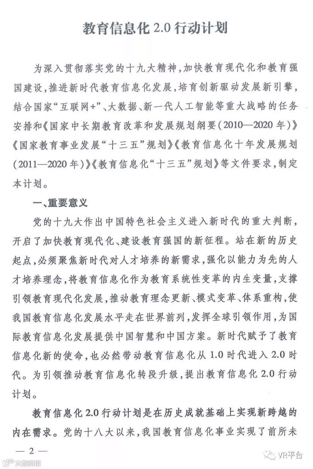 VR网(微信公众号:VR平台)编辑得知,近日,教育部办公厅发布教技[2018]6号文件,正式印发了《教育信息化2.0行动计划》。