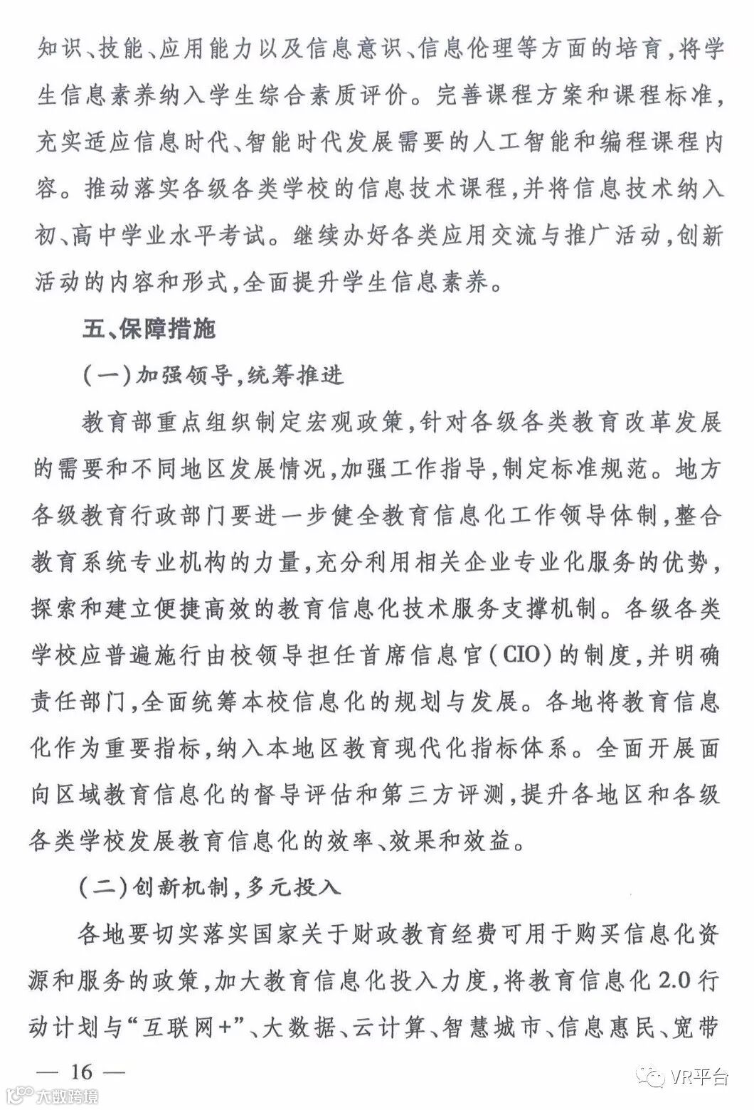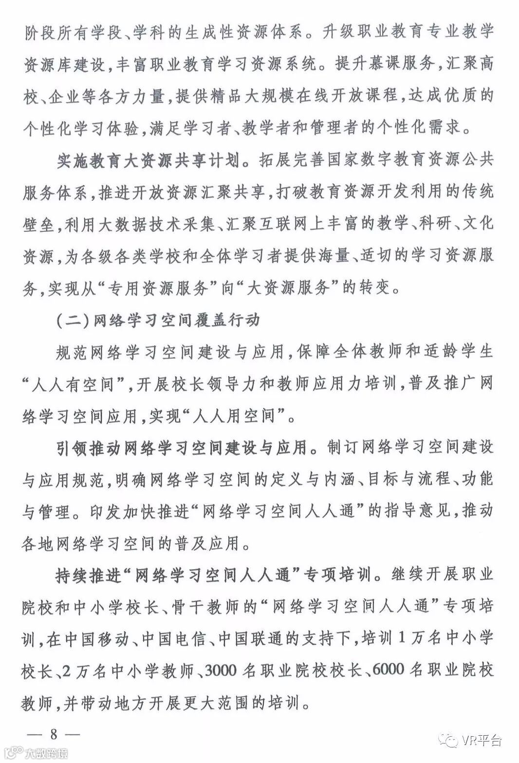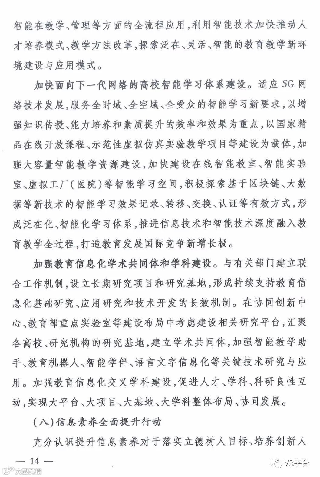 VR网(微信公众号:VR平台)编辑得知,近日,教育部办公厅发布教技[2018]6号文件,正式印发了《教育信息化2.0行动计划》。
