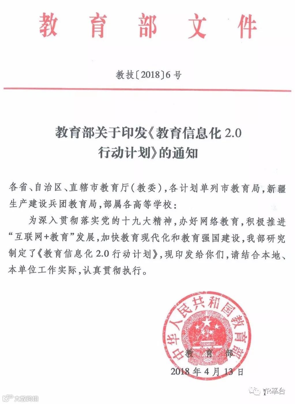 通知指出,为深入贯彻落实党的十九大精神,加快教育现代化和教育强国建设,推进新时代教育信息化发展,培育创新驱动发展新引擎,结合国家“互联网+”、大数据、新一代人工智能等重大战略的任务安排和《国家中长期教育改革和发展规划纲要(2010-2020年)》、《国家教育事业发展“十三五”规划》、《教育信息化十年发展规划(2011-2020年)》、《教育信息化“十三五”规划》等文件要求,制定《教育信息化2.0行动计划》。