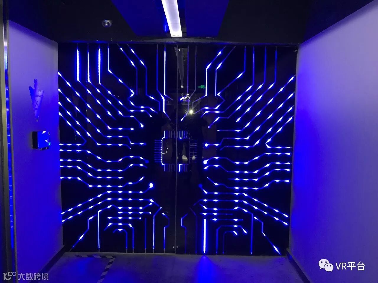 位于朝外大街唐缘209号大楼B1层的幻醒VR竞技场并未摆放明显的招牌,小编几经周折才找到它那标志性、充满科幻感的蓝色“神经状”大门。
