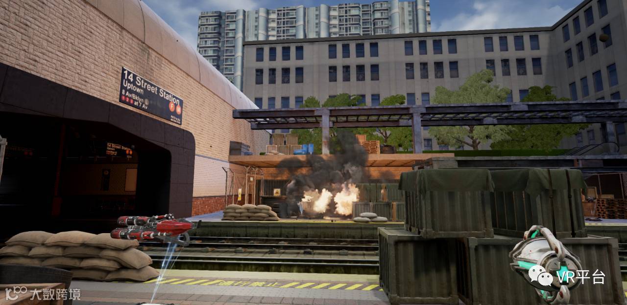 据悉《致命火力》共有6幅地图可以选择。在小编的体验中,我与其他玩家被分配到了废弃火车站隔空对射,本作由虚幻引擎制作,画面呈现非常逼真,动作自然;枪械、爆炸效果也体现的淋漓尽致,搭配声音特效以及体感枪械,呈现出非常浩大的枪战场面。