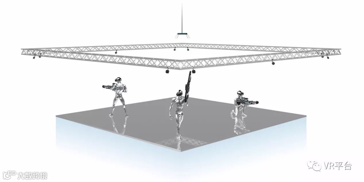 众所周知,HTC Vive头显使用激光定位方式给用户提供了房间级VR体验,该方式通过两个交替工作的光塔(lighthouse)扫描整个房间,结合惯性传感器提供6自由度的追踪信息。这种方式虽然能将空间定位计算量减到最低,但受激光发射距离和精度的限制,一对光塔只能追踪20平米左右的空间。虽然Valve已经透露了100平米范围使用4对光塔的定位方案,但工作在分时复用下的光塔并不支持现有Vive头显,且发货时间还遥遥无期。ZVR目前推出的“矩阵”方案,可基于现有的VR头显进行面积扩展,现在即可进行安装。