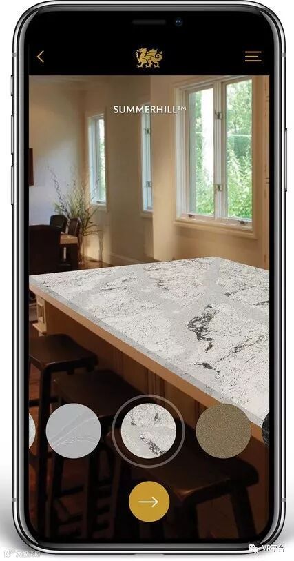 “利用AR技术,一切都变得更加方便简单,就连我12岁的女儿和41岁的妻子都能轻而易举使用这些应用。”Cambria的首席营销官Brain Peters说。“AR技术对于那些需要发送样品或色板的家庭用品制造商也非常有帮助,通过这些应用,客户便能够在要求样品制作之前就可以进一步缩小选择范围。”