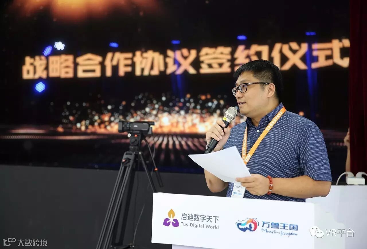 签约仪式由启迪数字天下R+事业部副总经理王海峰主持。中国电子商务协会虚拟现实专业委员会会长王永刚首先发言,王永刚会长表示,此次举行的签约仪式,是VR网和中国电子商务协会虚拟现实专业委员会业务发展与合作的又一新起点。