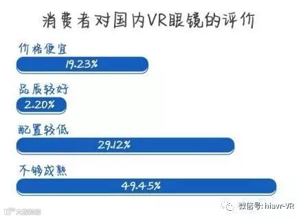 48.76%的消费者对现阶段VR体验不甚满意,49.45%的消费者认为目前国内VR眼镜技术不够成熟,配置较低。