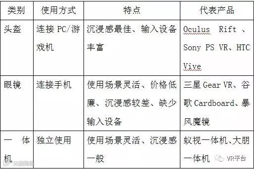 常见VR硬件设备产品形态