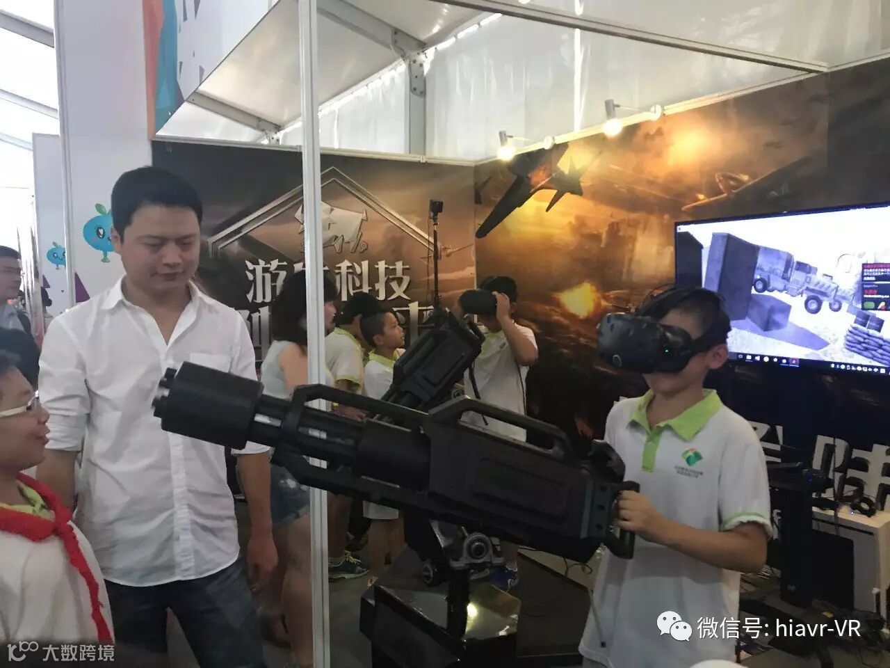 游牛科技的展位被很多小观众包围,原因是游牛带来了两台炫酷的VR机关枪外设,参观者可以免费体验游牛制作的《战火精英》游戏。《战火精英》这款登陆HTC Vive官方平台Viveport的游戏,曾在去年7月获得Viveport付费排行第六名。