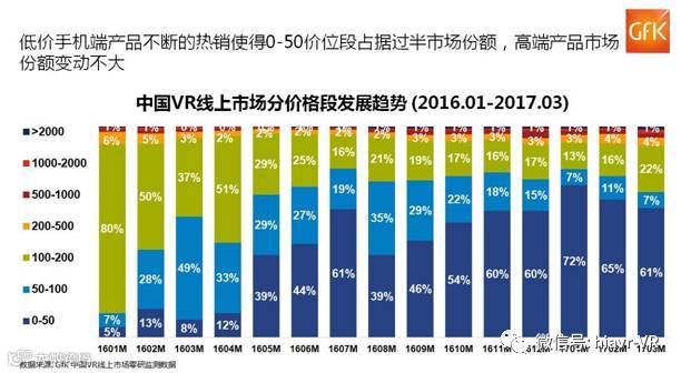 图4:中国VR线上市场分价格段发展趋势(2016.01-2017.03)