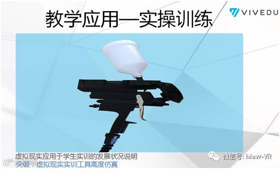 威爱教育还推出了虚拟现实教学应用实操训练,打造了高仿真度的实训工具,用于工业喷涂、焊接等学科应用。应用可以记录学生的操作流程,进行全面的数据化记录、分析与指导。