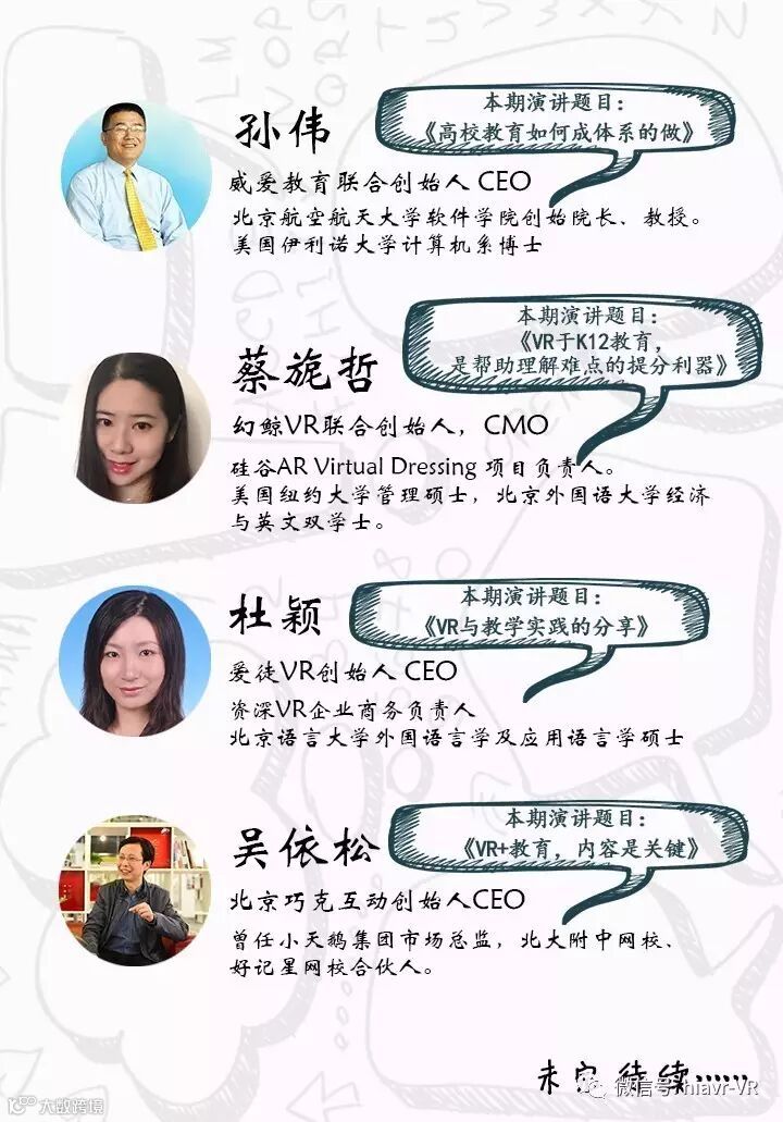 随着VR行业的发展,其应用也在不断延伸,而教育则是目前VR正在发展与改变的一个重要领域。通过虚拟现实,能更好地实现游戏性,让教育能够寓教于乐;同时它还能够有效地创建学习情景,促进知识表达和应用。那么,VR会给教育带来颠覆性的变革,还是加成性的帮助?并且,VR尚未爆发,VR教育也处于早期阶段,目前有什么应用进展?在落地过程中有哪些经验和教训?未来又有哪些发展的可能?等等这些问题,都值得我们的共同探讨,本期沙龙,我们邀请了几位在实践道路上的嘉宾,来分享他们的观点……