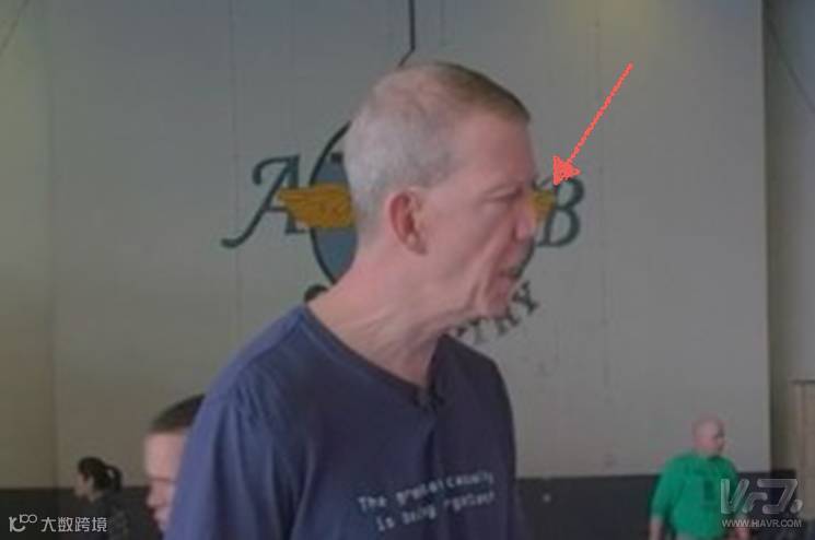 虽然下面这张图片不会动,看不太明显,但你还是可以看到这位男士鼻子周围的扭曲和畸变。如果放在视频中,这个位置就会很明显,并且会随着人物的轮廓而晃来晃去。