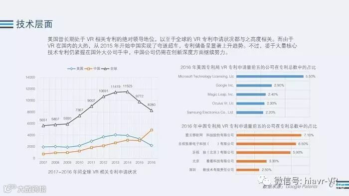 在技术层面上,从《报告》中可以看出,美国还是处于领先的地位,这当然也跟美国是技术大国和国内起步较晚有一定的关系。虽说美国处于领先地位,但是以目前VR在国内火热的形势来看,追赶美国也只是时间问题。
