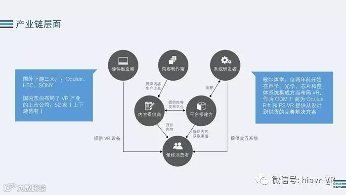 在产业链层面。不止国外,仅在国内就有52个厂家布局产业链的上下游,软硬件开发商皆有。这也反映了VR行业的产业链也在越发的完善起来。