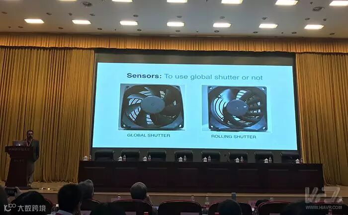 首先,Brian Cabral像与会嘉宾分享了他们在开发最佳的360摄像机方案时所探索过的方案,比如选择什么样的快门,多少台相机组合在一起才是最佳方案等等。