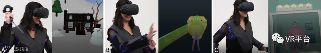 研究人员建立了三个VR应用程序来测试这件夹克,包括打雪仗的游戏,模拟蛇爬行的游戏以及一个"肌肉生长"的模拟,就像变成绿巨人一样。