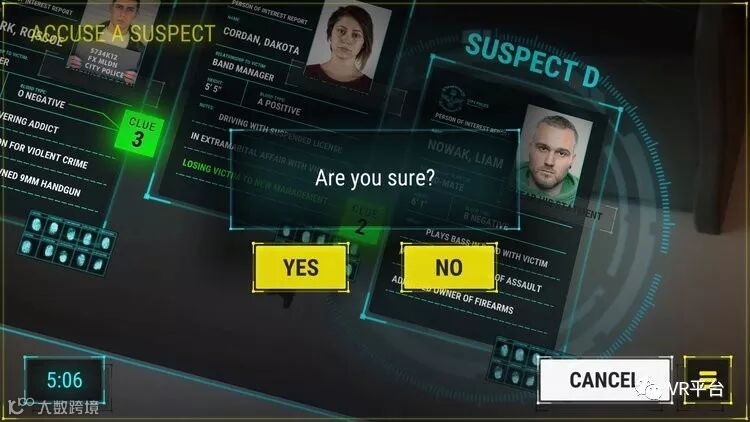 根据线索,你会发现背景信息和四名嫌疑人的记录相匹配,他们被确定为特伦特的经纪人达科塔、特伦特的贝斯手利亚姆、特伦特的弟弟罗斯科和他的的妻子安布尔·林恩。